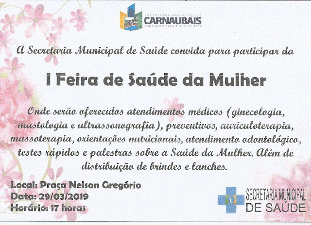 Prefeitura de Carnaubais realizará dia 29 I Feira de Saúde da Mulher